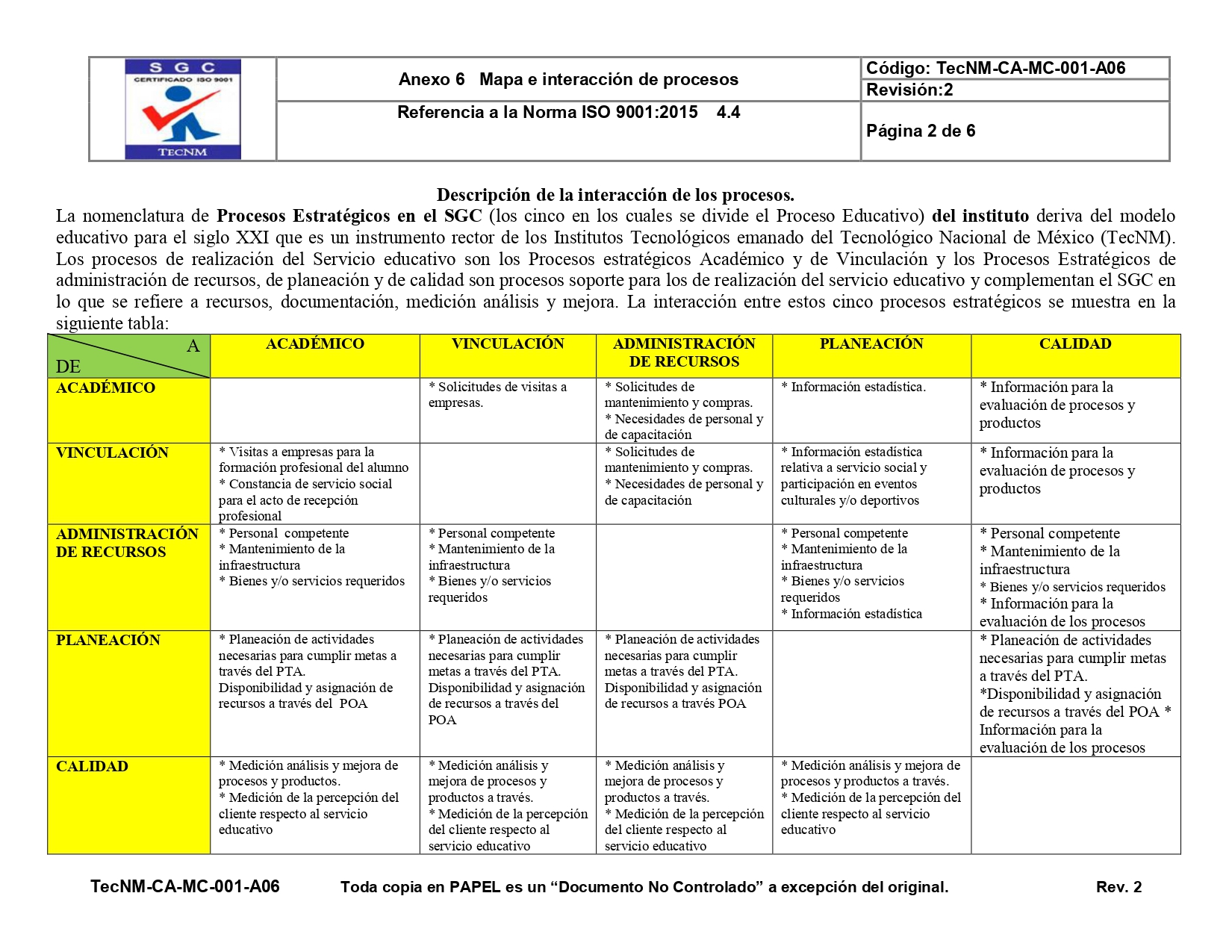 Misión y Visión Politica de Calidad Objetivos de Calidad Interacción de Procesos Plan